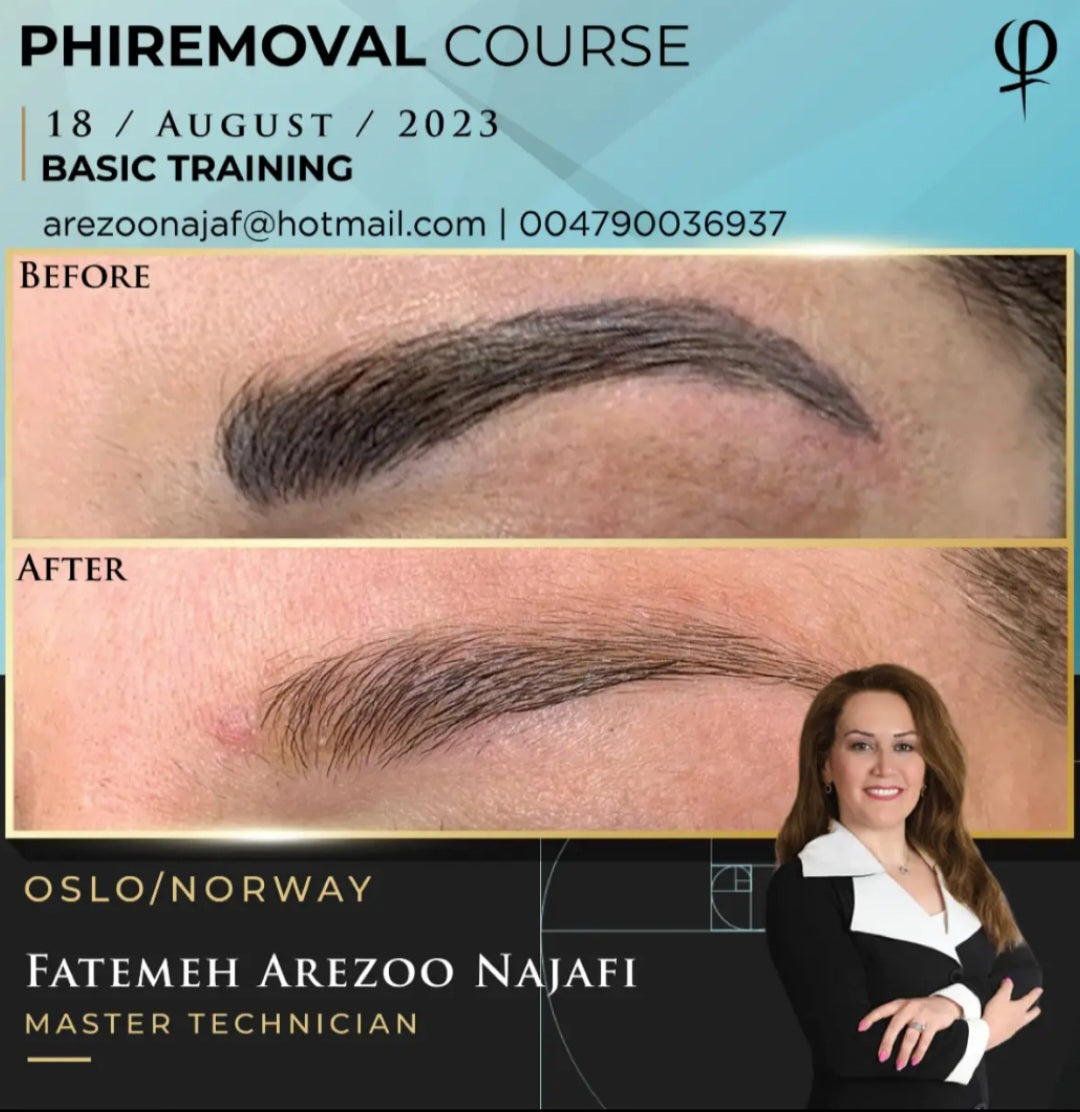 Part 1: Theoretical part: how to prepare the client, what does PhiRemoval treatment include, a course on hygiene, recognizing the origin of the pigment, and appropriate care after the treatment.